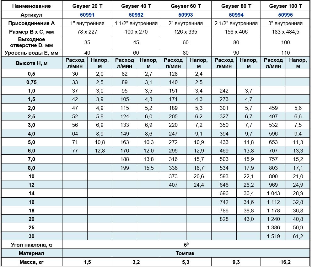 Высота струи max, м